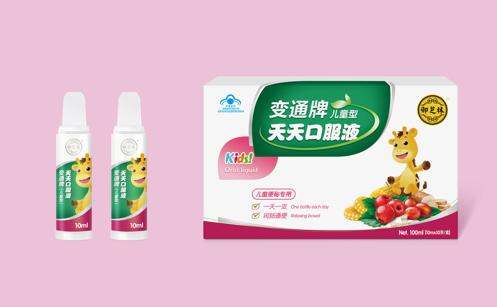針對“變通”牌天天口服液兒童型,除了表達產品特征以及屬性之外,為了吸引消費者視覺需求,在包裝上形成視覺焦點,李華清項目團隊找到了長頸鹿這一元素,富有親和力的長頸鹿,是每個孩子熟悉、喜愛的動物形象,傳遞品牌對孩子快高長大的祝愿,同時長頸鹿天性溫順、平和,傳遞出產品溫和、自然的特性。