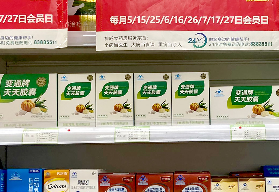 李華清為“御芝林變通”牌通便膠囊包裝打造位置商標,形成品牌獨有資產,塑造品牌記憶點,延伸產品好感度。兩款包裝終端呈現(xiàn)系列和家族感。